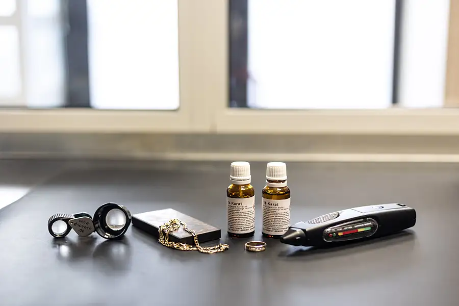Wir beleihen Goldschmuck, Goldmünzen und Goldbarren bis maximal 50 g pro Einzelbarren.